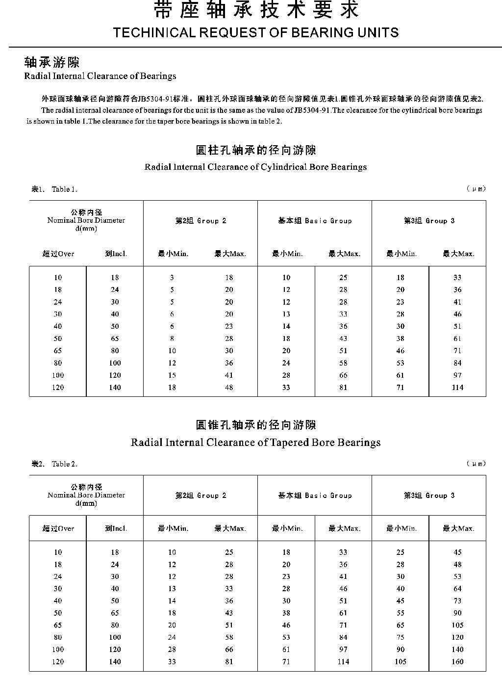 带座轴承技术要求